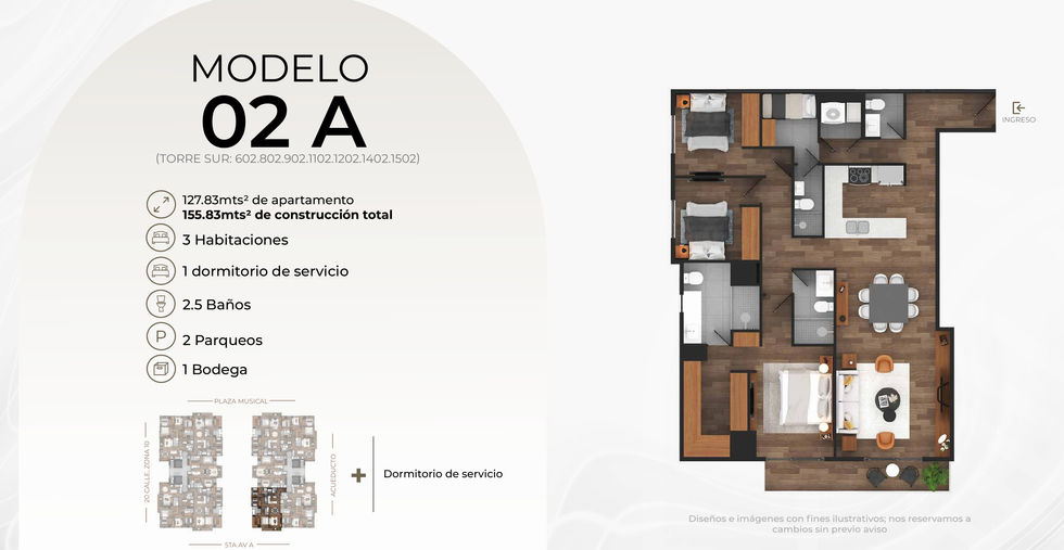-2 Torres. Torres Sur 16 niveles, Torre Norte 14 niveles